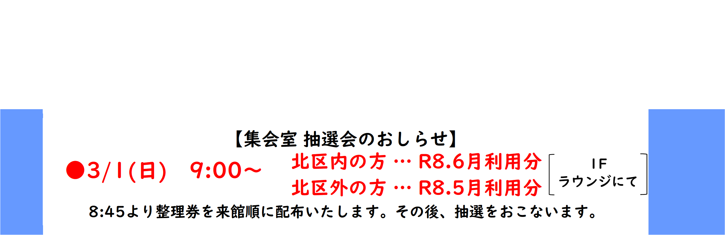 新着情報 2026年01月30日 お知らせ 令和7年度2月コース表の訂正・お詫びのお知らせ 2025年12月15日 教室・イベント 【3期水泳教室・4期運動教室 二次募集のご案内】 2025年12月10日 お知らせ 【2026年度 営業日カレンダー】 2025年11月27日 お知らせ 【年末年始休業のおしらせ】 2025年11月25日 教室・イベント 【3期水泳教室・4期運動教室のご案内】 各施設をご利用の方はこちら 2025年04月26日 温水プール整理券はこちら 2022年06月23日 集会室施設利用者様へのお願い